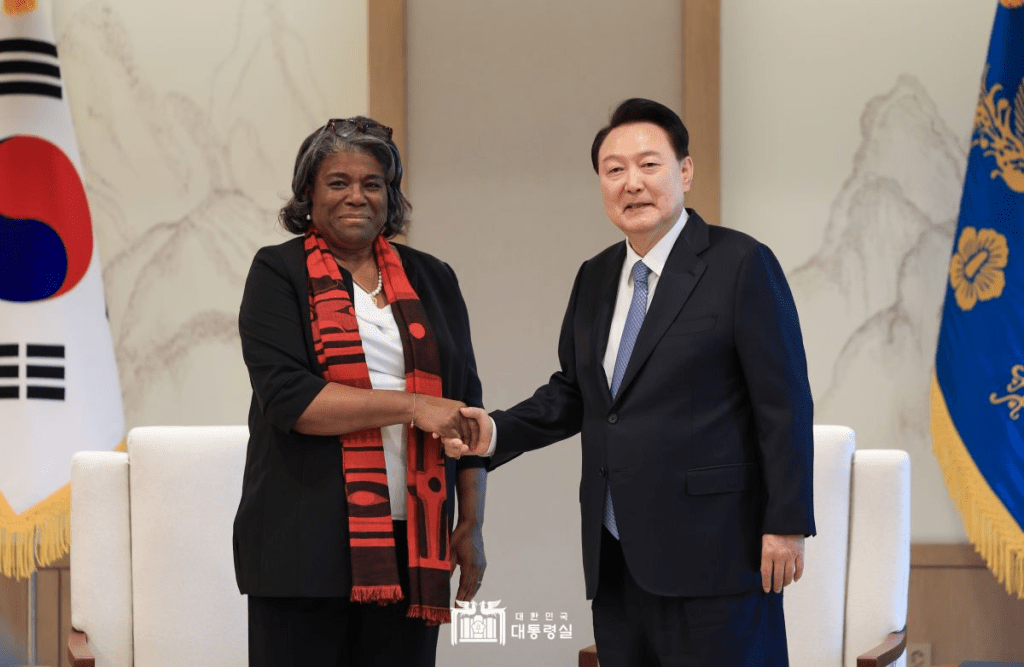 윤석열 대통령은 15일 방한 중인「린다 토마스-그린필드(Linda Thomas-Greenfield)」주유엔 미국대사를 접견하고, 유엔 안보리 이사국 활동, 한미 동맹, 북한 문제 등에 대해 의견을 교환했다.